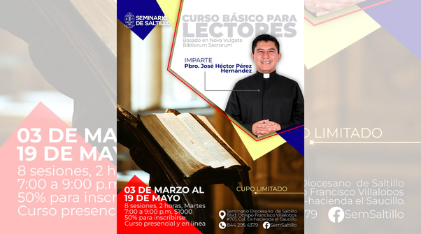 El Seminario Diocesano de Saltillo anunció la apertura del Curso Básico para Lectores, una propuesta formativa dirigida a quienes desean proclamar la Palabra de Dios con mayor comprensión, dignidad y profundidad dentro de la liturgia.